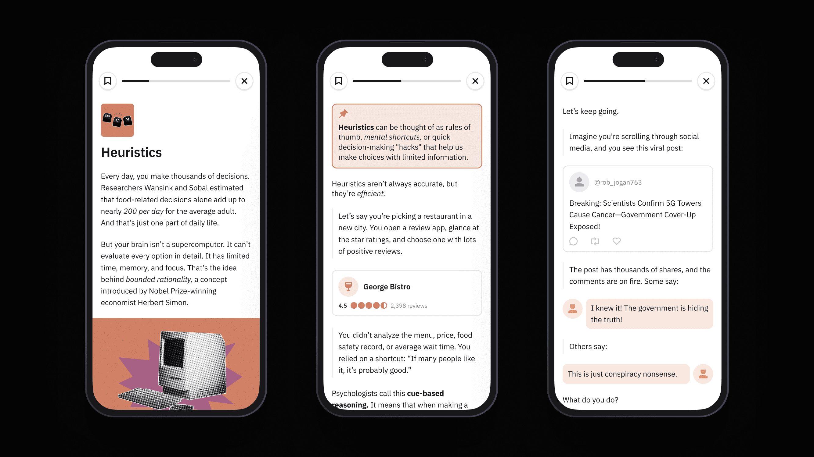Reasonal is a project I started with the goal of building a "Duolingo for critical thinking skills.” I believe misinformation and disinformation are among the most serious problems we face today, and AI is making both worse. Moderating everything is not sustainable, so people need tools that help them resist misinformation and disinformation.